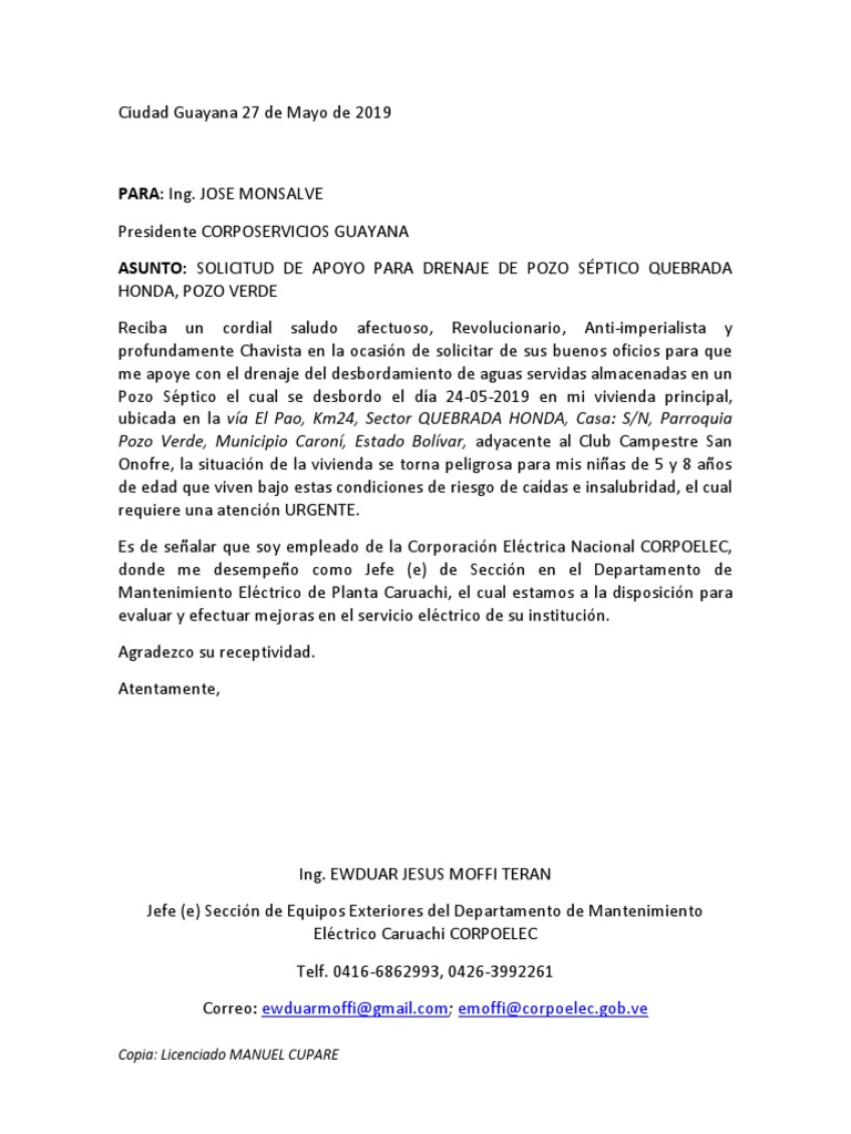 Home » Without Label » Carta Solicitud De Drenaje - Carta de solicitud : Una carta de solicitud es un tipo de carta formal que se utiliza para hacer algún tipo de petición a un organismo o institución.